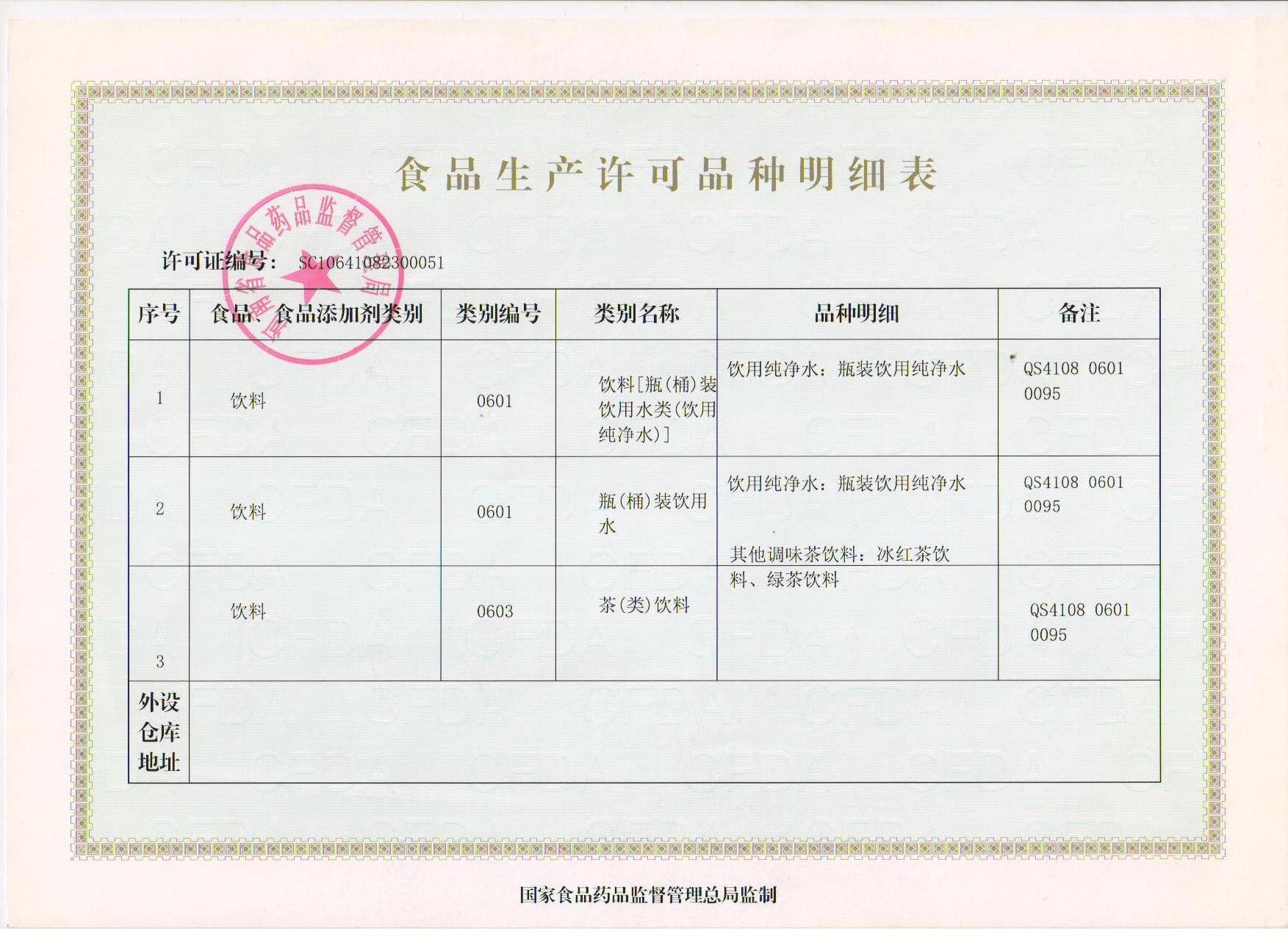 食品生產許可品種明細表